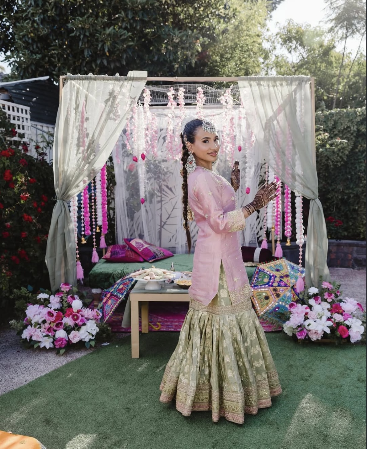 it is on pure tissue ( kurta and duppatta ) paired up with pure banarasi ghararar with intricate zari zardozi hand embroidery + handcrafted potli bag.